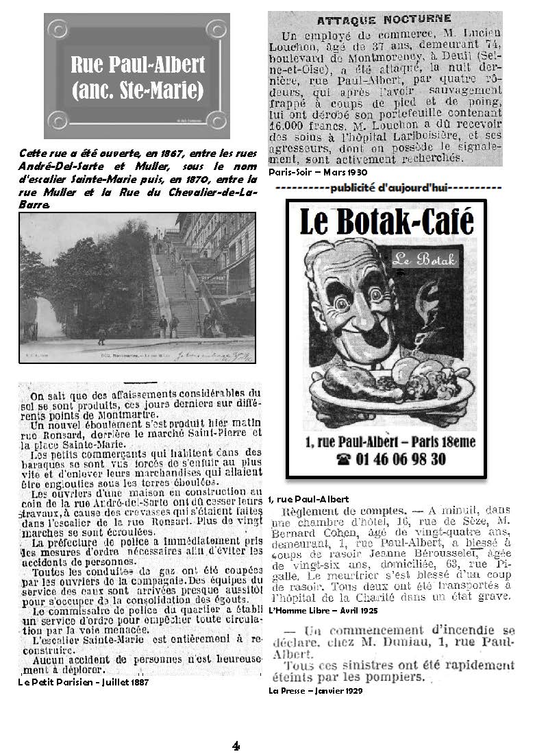 N° zéro : Rues Muller, A. Del Sarte, Feutrier, Ramey, Clignancourt, Lamarck, etc.
